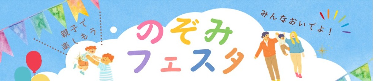 市民の皆さんから提供していただいたこいのぼりを、会館屋上から公園野外ステージまで泳がせます。風光明媚なのぞみ公園の空をたくさんの鯉が泳ぐ姿は壮観で、毎年多くの家族連れが訪れます。