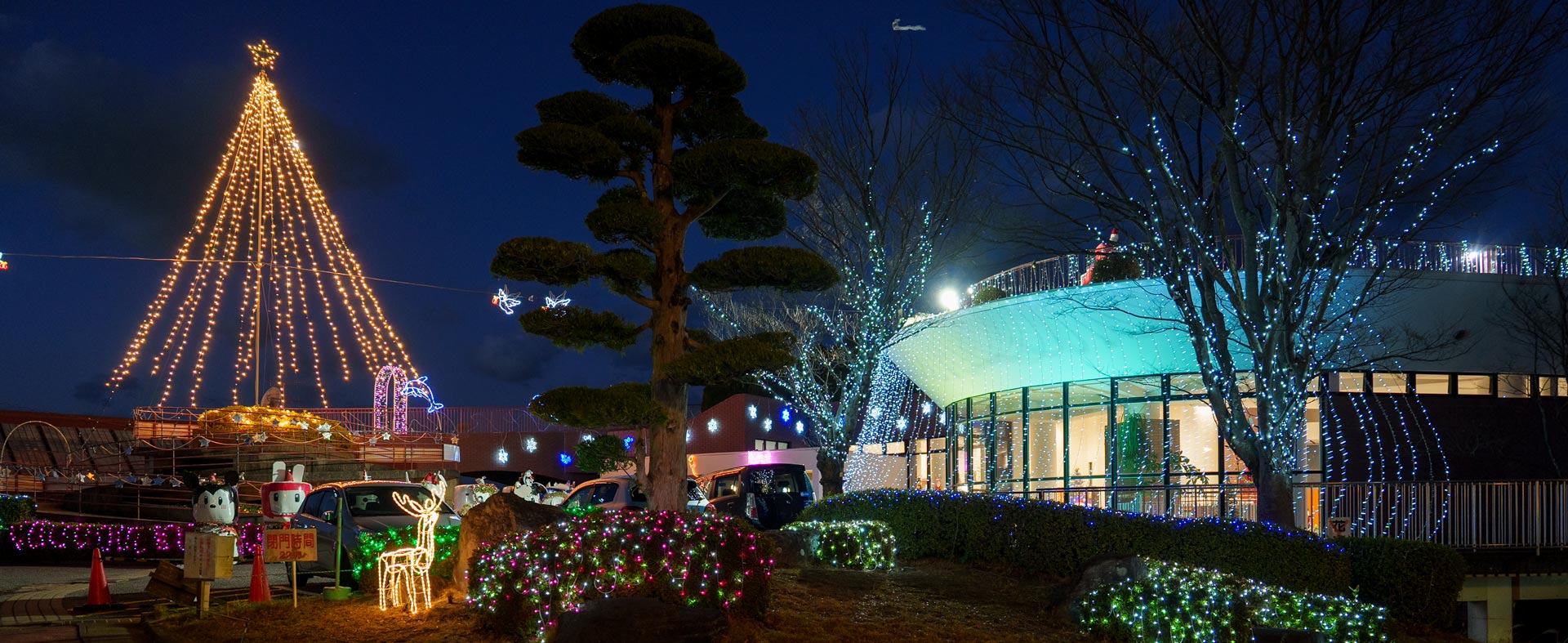 8万個以上の電球で作られる高さ12mのジャンボツリーを中心に、のぞみ会館の建物が幻想的なイルミネーションに彩られます。初日となる12月第1土曜はさまざまなイベントが行われ、サンタクロースも登場して夕方にイルミネーションの「点灯式」が行われます。イルミネーションは12月25日まで楽しめます。