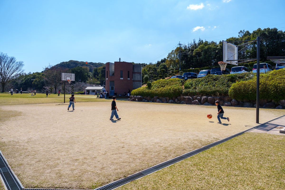 広い園内には大型遊具を多数備えた遊戯広場や芝生広場、ローラースケート場などがあり、休日は多くの人々で賑わいます。